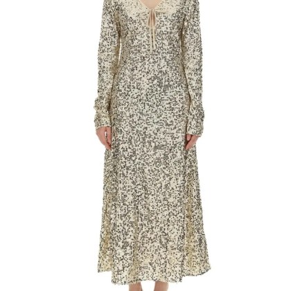 Rotate – Sequined Maxi Dress With Deep V-Neckline – Größe 34 – blue